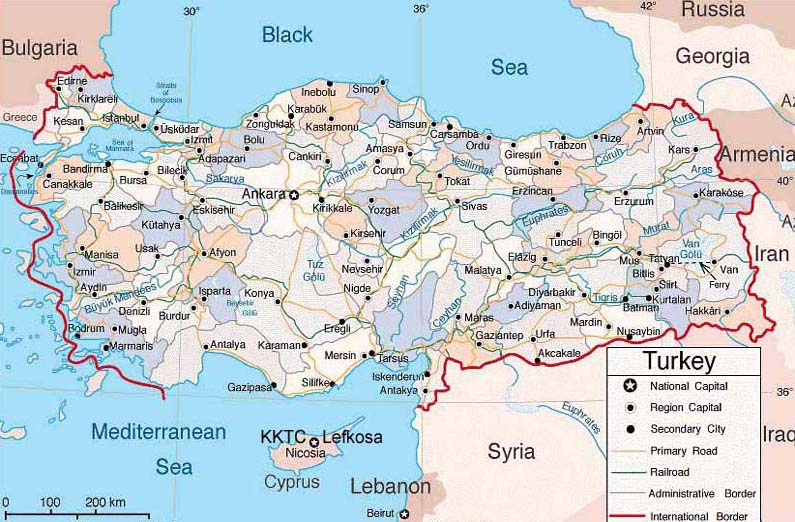 Two friends and I kicked it up a notch, though, in the summer of 2005. We took a cross-Turkey hitch-hiking trip. It was a blast. I have no idea how many kilometers we covered, but if I ever find the map I kept, I'll try to post the route we took. I've linked a map of Turkey, so folks can at least get an idea of the scale. We started in Istanbul, and finished there, having visited Nevşehir, Malatya, Hasan Keyf (not shown), Urfa, Mardin, Batman (no joke, check the map), Tatvan, and then some other obscure places: Doğubeyazıt and Çalderon (basically, this place was Iran), before Diyarbakır, whence we took the train to the 'Bul.